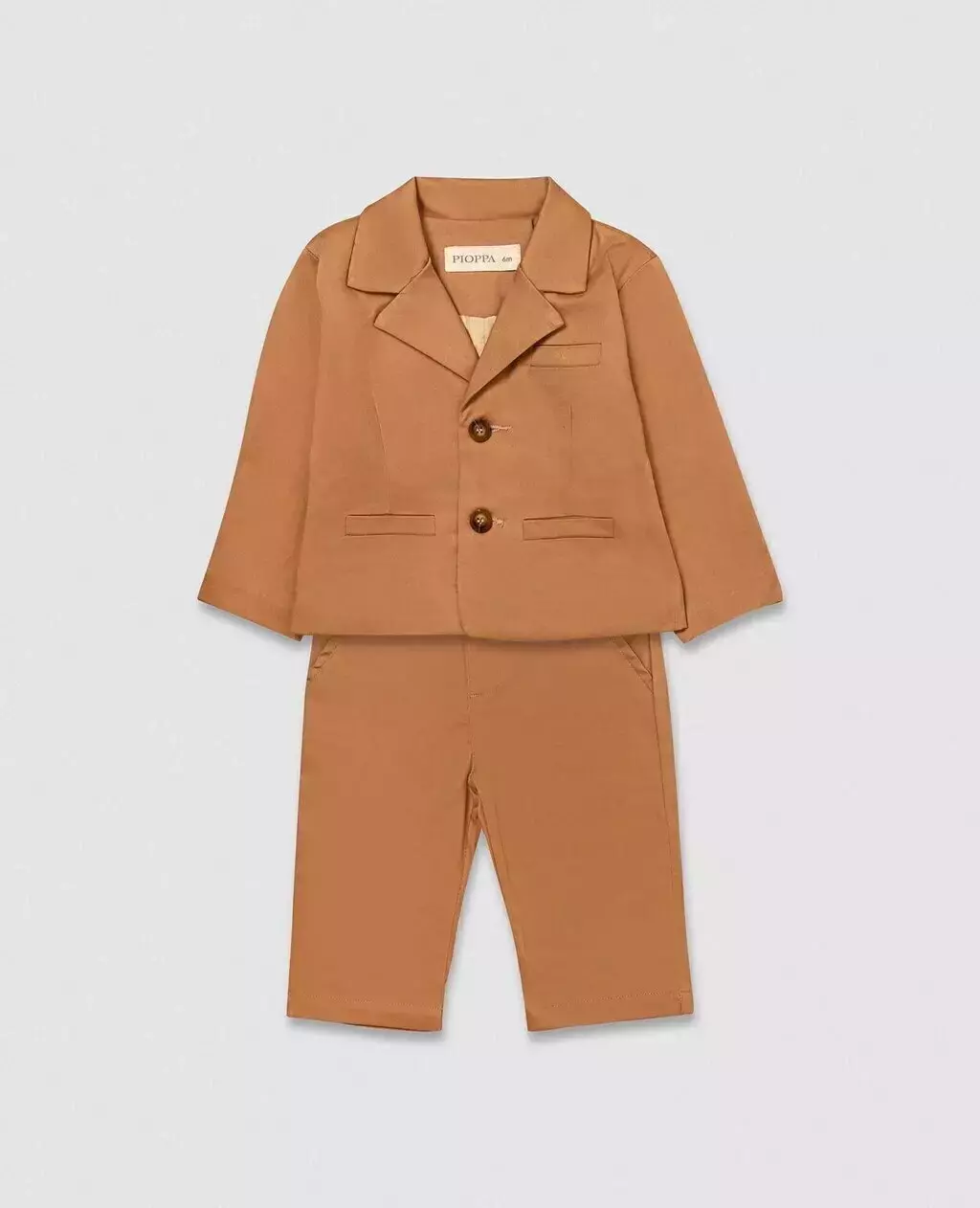 Traje confeccionado en gabardina esmerilada, este es un tejido de algodón suave al tacto pero a la vez muy resistente. Saco clásico con cuello solapa y bolsillos ojal falsos. Se encuentra forrado en tafeta. Pantalón corte slim. Posee botón y cierre, bolsillos de boca diagonal en el delantero y bolsillo ojal en la parte trasera. Su cintura, además de tener presillas, cuenta con cinturón interno regulable para optimizar su calce.